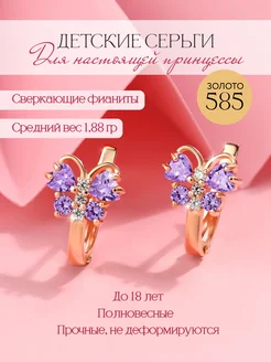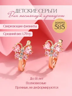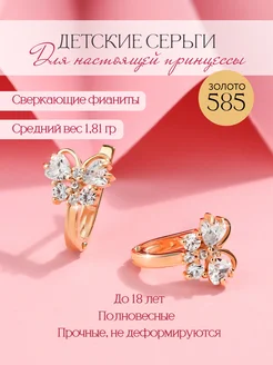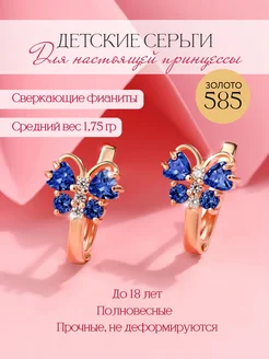 Элитные золотые серьги 585 "Бабочки" для девочки