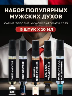 Духи мужские стойкие набор пробников с шлейфом 5шт по 10мл