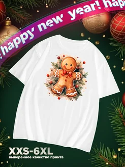 Футболка с принтом Новогодний Пряник Ёлочка 2026