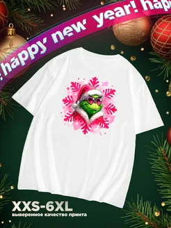 Футболка новогодний принт Гринч в розовых веточках Ёлки