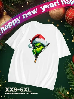 Футболка с принтом Новогодний Гринч подарок