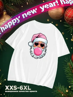 Футболка Современный Дед Мороз новогодняя с принтом хлопок