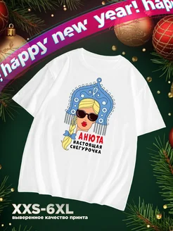 Футболка именная с принтом Анюта Снегурочка Новый Год 2026