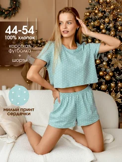 Пижама короткая футболка с шортами хлопок 100% сердечки
