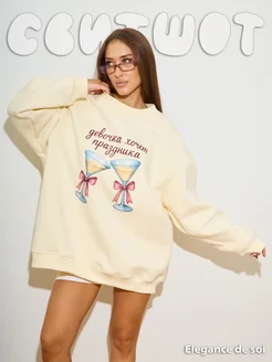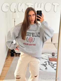 Свитшот оверсайз с начесом и принтом