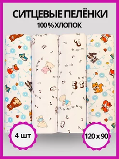 Пеленки для новорожденных хлопок ситцевые набор 4 шт