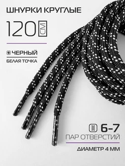 Шнурки для обуви круглые 120 см черные, белая точка
