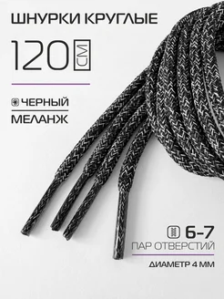 Шнурки для обуви, круглые 120 см черные, меланж