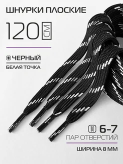 Шнурки для обуви плоские 120 см черные, белая точка