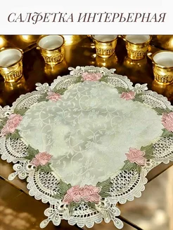 Салфетка декоративная интерьерная тканевая с кружевом