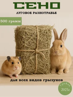 Сено луговое для грызунов и кроликов 500 грамм