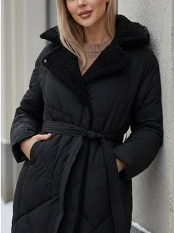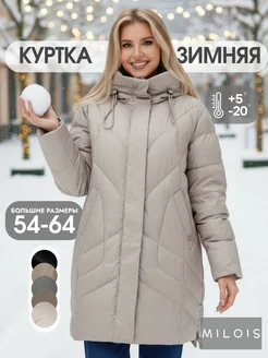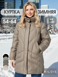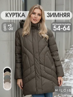Куртка зимняя удлиненная с капюшоном больших размеров