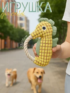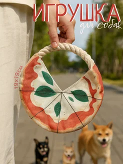 Игрушка для собак круглая пицца хлопок канат с пищалкой