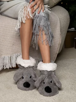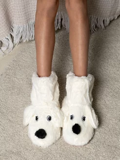 Высокие меховые носки тапочки новогодний подарок