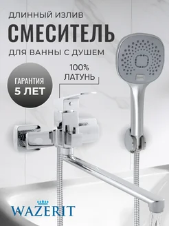 Смеситель для ванны и душа с длинным изливом и лейкой