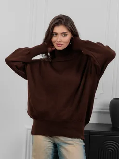 Свитер оверсайз с горлом удлиненный теплый