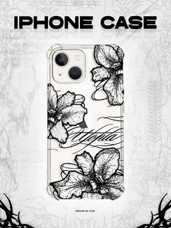 Прозрачный чехол на iPhone 14 лилии и надпись Y2K pinterest
