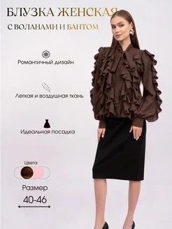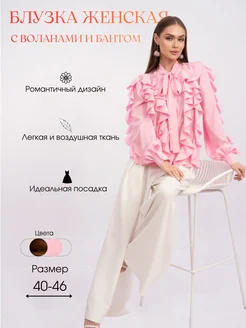 Блузка нарядная праздничная офисная с бантом и воланами