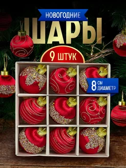 Игрушки елочные набор красных шаров с пайетками 10 см