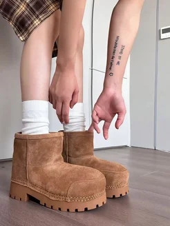 Зимние каштановые угги короткие Подошва Тепло Удобно