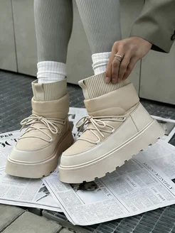 Коричнево-Бежевые Короткие Утепл. Зимние Сапоги