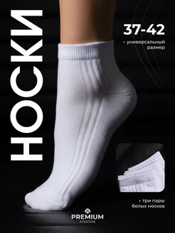 Носки белые набор 3 пары средние хлопковые в рубчик