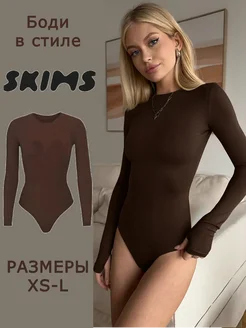 Боди с длинным рукавом обтягивающее шоколадное в стиле skims