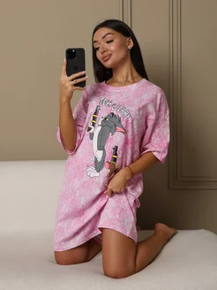 Платья Туника домашняя больших размеров хлопок новогоднее