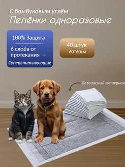 Пеленки для собак одноразовые угольные 60*60см 40 штук