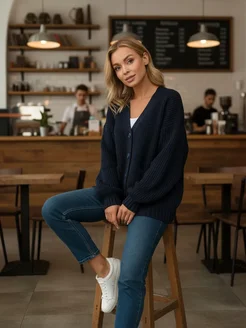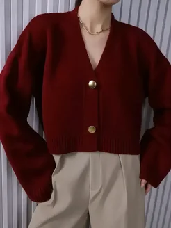 Кардиган вязаный укороченный на пуговицах оверсайз