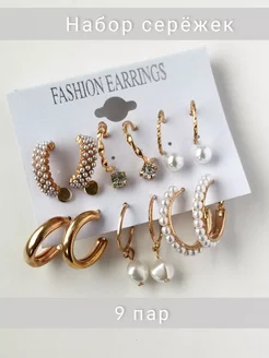 Набор серьги кольца пусеты вечерние 9 пар