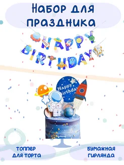 Набор Топпер для торта Космос с гирляндой Happy Birthday