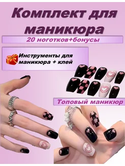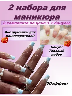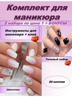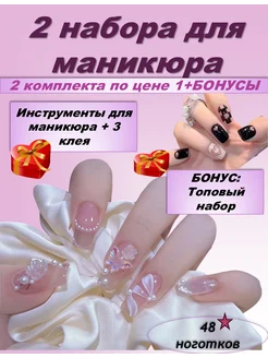 Накладные ногти френч 2 набора с дизайном и клеем 48 шт