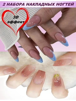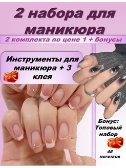 Накладные ногти френч нюд 2 набора с дизайном и клеем 48 шт