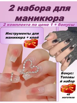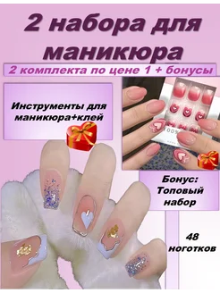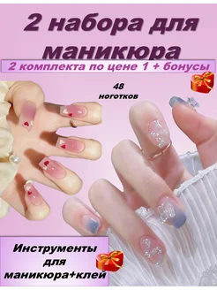 Накладные ногти нюдовые 2 набора с дизайном и клеем 48 шт