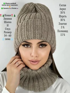 Комплект Двойной Внутри Флис Шапка + Снуд