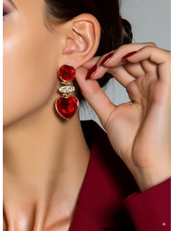Серьги красные сердечки висячие