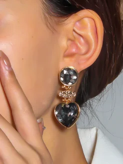 Серьги висячие сердечки винтажные кристаллы