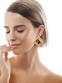 Серьги крупные ромбы квадраты геометрия золото