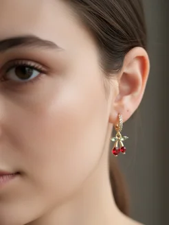 Серьги вишенки подвесные с камнем