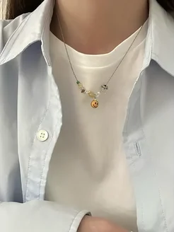Серебристая тонкая цепочка с подвеской “смайлик” y2k