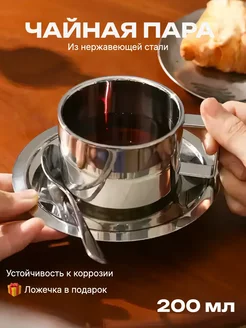 Чайная пара с ложкой из нержавеющей стали, подарочная