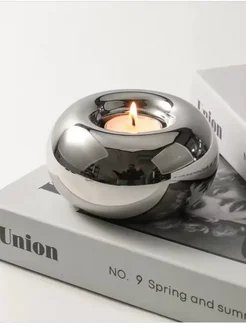Подсвечник серебристый керамический стильный