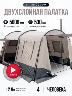 Палатка дом с тамбуром и выход под печь два слоя 4-8 местная