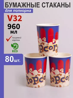Бумажные стаканы для попкорна 960 мл 80 шт