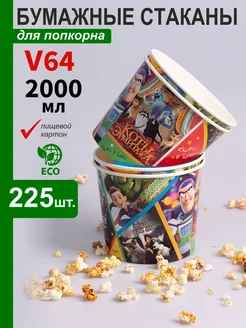 Бумажные стаканы для попкорна 2000 мл 225 шт