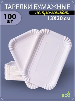 Тарелки бумажные одноразовые прямоугольные, 100 штук