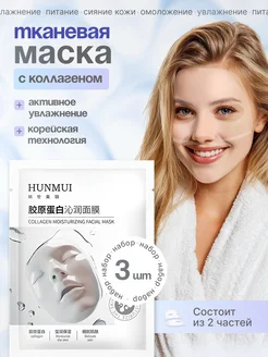 Маски для лица тканевые увлажняющие с коллагеном набор 3 шт