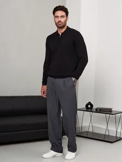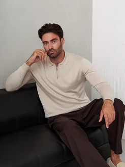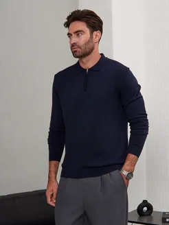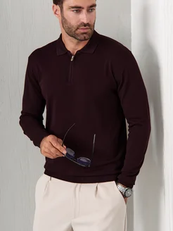 Джемпер поло трикотажный на молнии с длинным рукавом