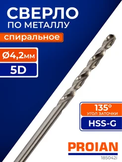 Сверло спиральное по металлу 4,2 мм, HSS-G, 5D, 135°
